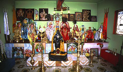 Vue d'ensemble d'un sanctuaire (ici à la "Chapelle La Misère, à Saint-Gilles-les-Hauts). On est frappé par la profusion de représentations divines, sous formes diverses (padon, sélé, kalou...)