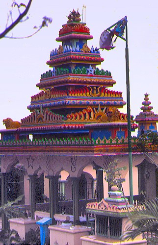 Temple tamoul de l'ouest de la Réunion. On remarque, sur la droite, le mât et le pavillon de Nargoulan.